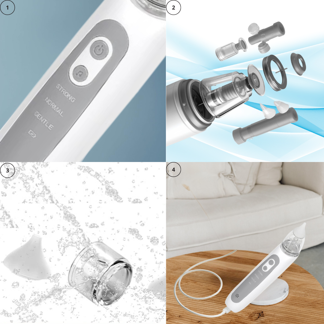 L'efficacia incontra la sicurezza. Ecco cosa rende il nostro aspiratore un investimento per la salute e la serenità del tuo bambino.